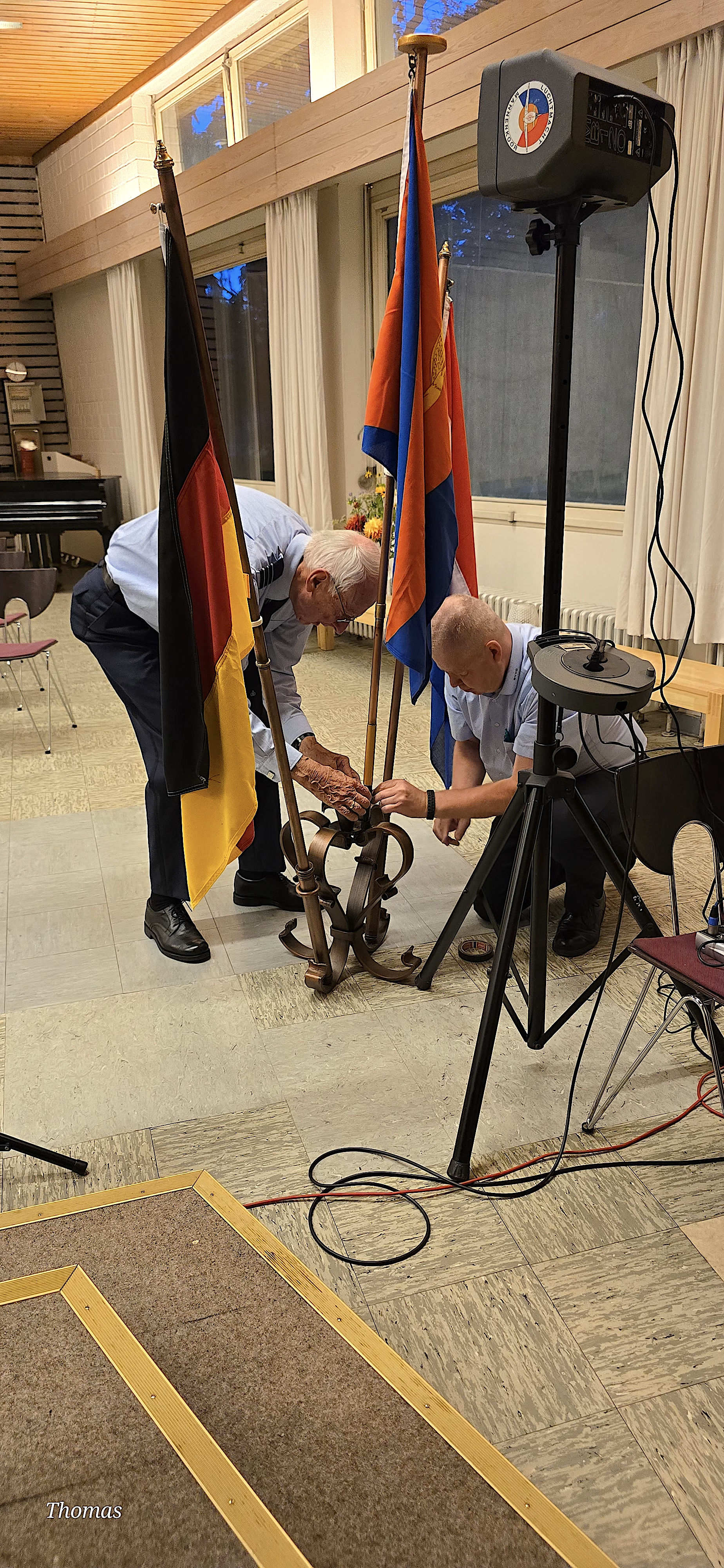 Jammer genoeg is het podium erg klein en moeten wij zo goed als mogelijk onze plaatsen innemen.