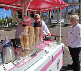 Er is aan het begin weinig publiek aanwezig, maar wel een ijscokar.
